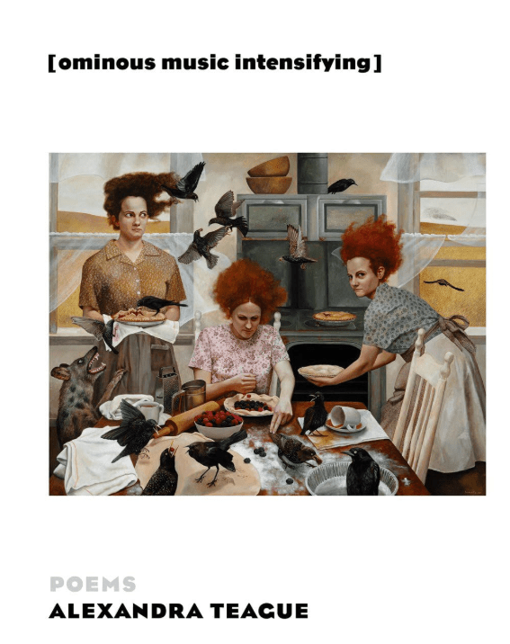 To be fair, the cover art is called The Visitors by Andrea Kowch which Steve Parks of Newsday described as “Using Middle America . . . [to draw] the history of a particular place— invariably rural—to the surface as it collides with a new reality in layers of metaphor and moodiness. The faces of her… Continue reading Alexandra Teague’s 2024 collection [ominous music intensifying] feels retro. I don’t think it intends to.